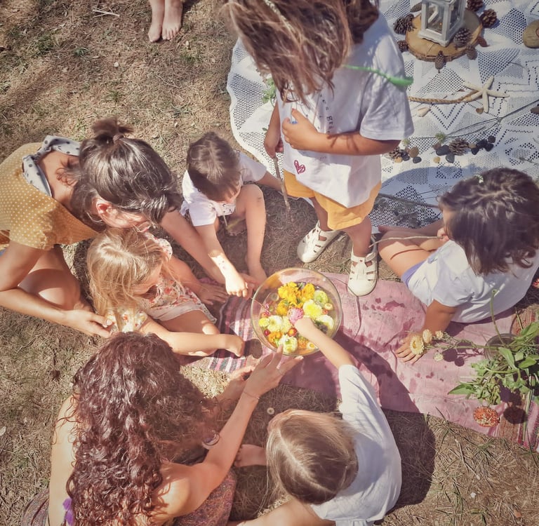 Esta propuesta emerge de una mirada compartida entre Estels espacio de vida y juego y Míriam Serrano de Educación a favor de la vida. El cuidado y dejarnos atravesar por el conocimiento de la Tierra nos ha llevado a la sencillez de compartir y celebrar vida en familia, poniendo en el centro a niños, adultos, la naturaleza y las tradiciones.
